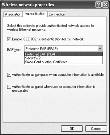 After the EAP method, there is a checkbox to "Authenticate as computer when computer information is available". Checking this box allows a system to authenticate to the network using machine credentials, which allows Windows domain housekeeping to occur before user authentication. Operation of this process is discussed in a later section of this chapter.