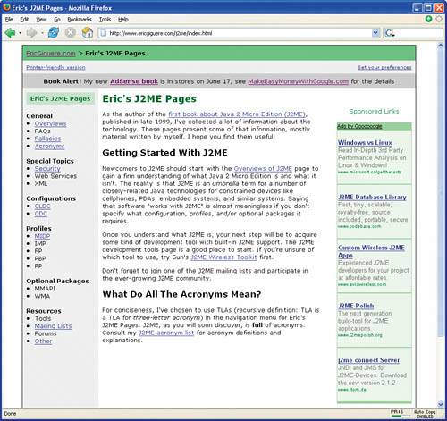 A common configuration is the three-pane layout, with a navigation bar in the left pane, the page content in the middle pane, and ads in the right pane (Figure 5.16). Other configurations are also available. If the navigation bar is in the header, for example, you might use a two-pane format, with content on one side and ads on the other. Or you might use a single-pane format and place the ads in the header and/or the footer. Or insert them in the middle of the contentthere are AdSense formats for every possible situation! Figure 5.16. A typical page, with a navigation bar on the left, content in the middle, and ads on the right.  If you can't decide what page layout to use, model your site after a favorite Web site. Sketch it out on paper and see if you like it. Whatever you do, though, be consistent and use the same layout throughout the site wherever you can. Copyright Issues The design of a Web page is also protected by copyright, just like the content. If you duplicate someone else's site down to the last detail, you can be sued for copyright violation. That's why other sites should be used as models only. Design Principles Entire books have been written on how (and how not) to design Web pages. Unless you're a graphic designer by training, your pages won't be works of art filled with special effects. Your goal is to create attractive pages that are easy to read. Do it by following simple design principles: Add white space. The term white space refers to the empty areas surrounding blocks of text and other page elements. Leaving out white space is a common mistake. Compare the crowded text block in Figure 5.17 to the same block in Figure 5.18. Notice how the white space makes the text much more attractive and readable. Figure 5.17. A lack of white space makes the text harder to read.