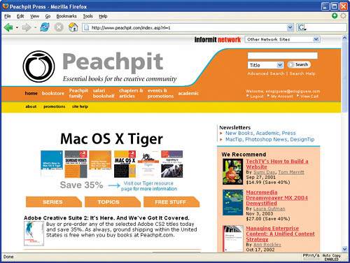 Keep pages short and not too wide. Don't cram reams of text onto a single page and overwhelm the reader. Spreading the text across several pages also exposes the reader to more ads, which can only benefit you. Make sure your text blocks aren't too wideshorter columns are easier to read. Be printer-friendly. Speaking of wide pages, there's nothing more frustrating than printing a Web page and ending up with cut-off text. Ensure that your pages print properly, or else provide alternate "printer-friendly" versions that do. Keep the interesting or important material "above the fold." In the newspaper industry, the term "above the fold" refers to the top part of a folded newspaper page, the first part that a reader sees. In Web design, the term refers to the part of a Web page that is initially visible in a normal-sized browser window (Figure 5.21). Figure 5.21. Keep the important material "above the fold" so the visitor always sees it.
