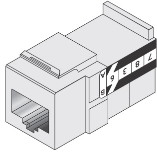 Figure 8-10: Modular RJ-45 jacks inserted in a keystone faceplate