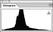 | How do you discern whether you got what you were after? Let's face it, when you shoot a digital image, you immediately check the LCD display to assess your results. Do you keep the first image, or do you need to reshoot? How do you decide, especially if you're away from your computer or out in the field as I was while shooting in Tuscany? One thing is for sure: Don't trust the paltry little LCD screen on the back of your camera. It might show you composition and framing, but it lies and deceives when it comes to exposureit cannot show you anywhere near the level of detail necessary for critical decisions. The solution is to use histograms. A histogram is a graphic representation of how pixel information is distributed within the tonal range of an image. How much information is in the highlights? How about in the shadows? What's the darkest pixel? All these questions can be answered quickly using a histogram. When you're shooting in the field, you can access the histogram for the image you just shot to see whether you exposed properly for the highlights. If the highlights are clipped (too strong) or if there is no information in the highlight range, you know that the exposure is incorrect and you should probably reshoot. The next section explains how histograms are structured and how to read them so that you can make intelligent decisions about exposure and tonal range. Anatomy of a Histogram The histogram is a common tool in assessing the tonal range of an image. It's in most camera preview systems, as well as in Photoshop and other image-editing software. Because the histogram is a standard measurement tool, you must know how to read a histogram correctly and understand how it relates to the image as well as your creative objectives. In a histogram, pixel values are represented along the horizontal baseline, increasing from left to right. Rising up from the baseline are peaks and valleys that graph the proportionate number of image pixels corresponding to the baseline value. A quick glance tells you whether you have any peaks in the highlights or shadows, signaling that pixel data is present in that area (see Figure ). Check to see whether image data is present across the full tonal spectrum, especially in the areas that interest you the most.