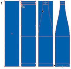 Making a basic rectangle, adding mesh points where the shape will be contoured, using the Scale tool to move groups of points inward.  To narrow the bottle neck, Miyamoto then used the Direct Selection tool to select the anchor points at the top of the bottle. With these points selected he switched to the Scale tool. By default the Scale tool is centered on the object, so he grabbed one of the selected points and holding the Shift key, dragged towards the center of the bottle, narrowing the neck symmetrically. He also selected the bottom two points and dragged the points inward. Shaping mesh objects. To continue to transform your rectangle into a rounded bottle, you'll next modify the corner points along the edge into curves. Using the Convert Anchor Point tool (hidden under the Pen tool) and the Direct Selection tool, select anchor points, smooth anchor points and modify the corners to rounded curves. Miyamoto smoothed curves at the bottom of the bottle, holding Shift to constrain the path curves.