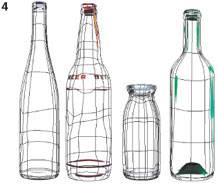The final bottles shown with the mesh layer in Outline mode, and the finishing details (mostly gradient-filled objects) in Preview mode  |