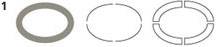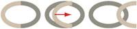 At the left, the ring drawn with the Ellipse tool and given a thick stroke; in the middle, the ellipse cut into four curve sections shown in Outline view (sections are separated to show them better); on the right, the four curve sections shown in Outline view, after using the Object > Path > Outline Stroke command