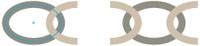On the left, the half-link selected and reflected using the Reflect tool (the X in the middle of the guide ellipse served as the axis); on the right, both half-links in position  To make the right half-link, select the left two curve objects and duplicate them to make the right half-link by dragging the two objects to the right while holding down the Opt/Alt key; then change the color of the copies. For the left half-link, select the two curves you just dragged and colored, choose the Reflect tool, hold down the Opt/Alt key and click in the center of the ellipse guide (the center point is an X). In the Reflect dialog box, click the Vertical Axis button and click Copy to create a mirror-image of the right half-link for the left half-link. Note The center link must be aligned exactly in-between the two half-links, so that the half-links join when applied to a path as a Pattern brush.