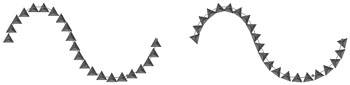 Defining a Scatter Brush To define a new Scatter brush, start by creating the art for the brush on the artboard. Once it is complete, drag the artwork directly into the Brushes palette. Alternatively, you can select the art and click the New Brush icon in the Brushes palette or select New Brush from the Brushes palette menu. Choose New Scatter Brush from the New Brush dialog and click OK to open the Scatter Brush Options dialog (Figure 5.8). Figure 5.8. The Scatter Brush Options dialog presents a plethora of settings that you can use to create a wide variety of results.  Size. The Size setting can be a fixed or random number; this setting determines how big or small the art is drawn on the path, relative to the actual size of the art that was used to define the brush. For example, if you create a design that is 1 inch tall and use it to define a Scatter brush, a size setting of 50% result in a Scatter brush that creates designs that are .5 inches tall. With pressure-sensitive tablets, you can set the size to change based on pressure, stylus wheel, tilt, bearing, or rotation. When you are not using the fixed option, the two values determine the range that the size can change. Spacing. The Spacing setting can be a fixed or random number and determines the amount of space that appears between each instance of art that is drawn on the path. Higher values add more space between each copy of the art, and lower values make the copies of art appear closer together. With pressure-sensitive tablets, you can set the spacing to change based on pressure, stylus wheel, tilt, bearing, or rotation. When you're not using the fixed option, the two values determine the range that the spacing can change. Scatter. The Scatter setting can be a fixed or random number and determines how far away each instance of art that is drawn deviates from the path. Negative values shift art lower and to the left of the path; positive values shift art higher and to the right of the path. With pressure-sensitive tablets, you can set the scatter to change based on pressure, stylus wheel, tilt, bearing, or rotation. When you're not using the fixed option, the two values determine the range that the scatter can change. Rotation. The Rotation setting can be a fixed or random number and determines the angle that each instance of art is drawn on the path. With pressure-sensitive tablets, you can set the rotation to change based on pressure, stylus wheel, tilt, bearing, or rotation. When you're not using the fixed option, the two values determine the range that the rotation can change. Rotation relative to. You can set the rotation so that it is relative to the page, in which case all instances of the art appear consistent, or to the path, in which case all instances of the art rotate in accordance with the direction of the path (Figure 5.9). Figure 5.9. Depending on your desired result, you can specify art to rotate in relation to the page, where all of the triangles are rotated in the same way (left) or to the path, where all of the triangles are rotated to match the curved path (right).