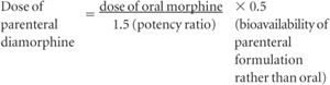 An alternative high potency opioid is hydromorphone. Hydromorphone is five times more potent than morphine [9]. Given the preceding, a reasonable starting intermittent parenteral bolus dose is 0.01 0.02 mg/kg/dose. It is also a short half-life opioid, like morphine, and therefore is often given every four hours. If the patient has previously been on oral hydromorphone, the parenteral dose should be calculated as a half to a third of the oral dose, because of first pass metabolism.