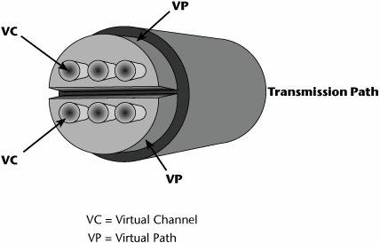 The ATM transmission path includes two elements called the virtual path and the virtual channel (see Figure 7.19). You can think of the virtual channel as an individual conversation; each voice, video, data, and image transmission has its own unique virtual channel. The number of that channel will change between any two switches, depending on what was assigned at the time the session was negotiated.