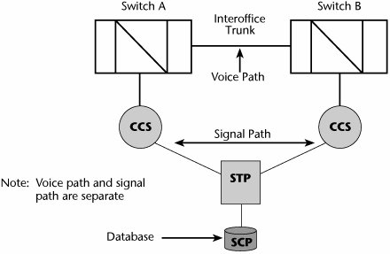 We have moved away from the per-trunk signaling environment to what we use todaycommon-channel signaling (CCS; see Figure 4.12). You can think of CCS as being a separate subnetwork over which the signaling message flows between intelligent networking components that assist in the call completion and in the delivery of the service logic needed to deliver the requested feature. Today, we predominantly use the ITU-T standard SS7 for CCS. SS7 refers to a group of telephony signaling protocols used to set up the majority of the world's PSTN telephone calls. While it is generally referred to as SS7, in North America it is also sometimes called CCS7 for Common Channel Signaling System 7, and in Europe, particularly the United Kingdom, it is referred to as C7 (for CCITT 7).