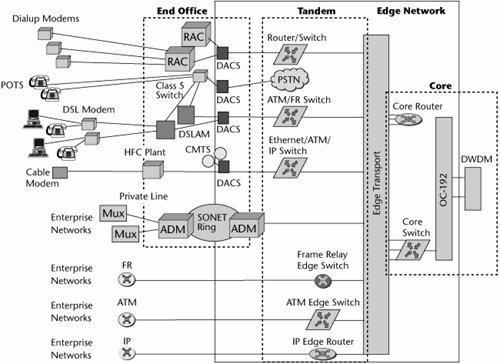 Network architectures are in transition. In today's environment, time division and statistical multiplexers gather customer traffic for additional circuit-based aggregation through a stable hierarchy of edge (i.e., local), tandem, and core switching offices in the carrier networks. Overlay networks, such as X.25, Frame Relay, ATM, and the Internet, have been put in place and have created the need to internetwork services, thereby eroding traditional network borders. As additional access in transport optionsincluding cable, DSL, fiber, and wirelessbegan to be introduced, they joined traditional modems and brought their own high-density access aggregation devices into the picture. Meanwhile, in the core, SDH/SONET transport has been layered over DWDM, adding capacity and producing a variety of vendor-specific switching, routing, and management options.