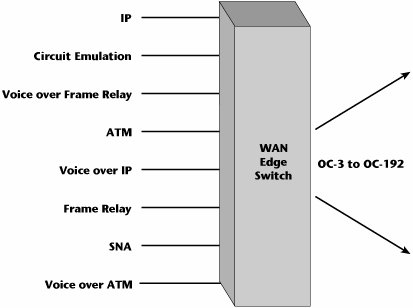 The ideal situation would be a multipurpose WAN switch that could facilitate the termination of any type of data protocol as well as facilitate aggregation at high speeds to the various optical levels (see Figure 10.7). This is what we're striving for with the intelligent edge.