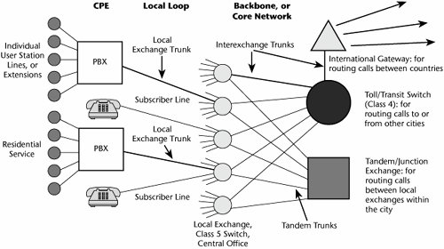 Many abbreviations and acronyms are used to define the various players and the parts of the network in which they play. Some telcos can and do fulfill more than one of these functions, depending on the policy, regulatory, and licensing conditions that prevail in the area. The following terms are largely used in the United States, but they are important to the discussion in this chapter because they illustrate the functions service providers are addressing: