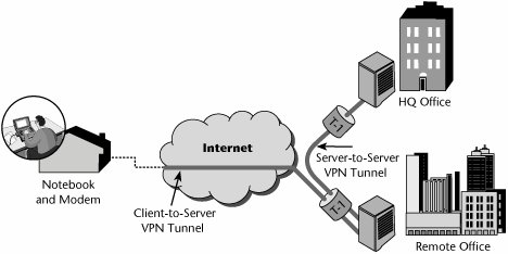 The most interesting and immediate VPN solution for most customers is the replacement of remote access servers. VPN remote access implementations can save customers from 30% to 70% over traditional dialup remote access server deployment. Remote access servers provide access to remote users, generally via analog plain old telephone service (POTS) lines, or, perhaps, ISDN connections, including dialup protocols and access control for authentication (administered by the servers). However, a remote access server requires that you maintain racks of modems, the appropriate terminal adapters for ISDN services, or DSL-type modems for DSL services. You also need remote access routers, which connect remote sites via a private line or public carriers and provide protocol conversion between the LANs and WANs. To have an internal implementation of remote access, you have to acquire all these devices, as well as the talent to maintain them.