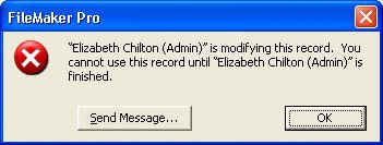 Figure 11.1. You see this message if you try to edit a record someone else is modifying. If need be, use the Send Message command to ask for control.