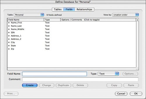 Figure 19.2. The field structure for a basic table of customer information.