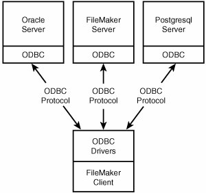 There are, of course, many other kinds of relational database servers in existence. Like FileMaker Server, each other product communicates using its own specialized protocol. But to overcome all this rampant disparity, a number of database and software vendors worked together to develop some more standard protocols for accessing database servers, so that rather than access databases a dozen different ways, clients can rely on a more consistent access method.