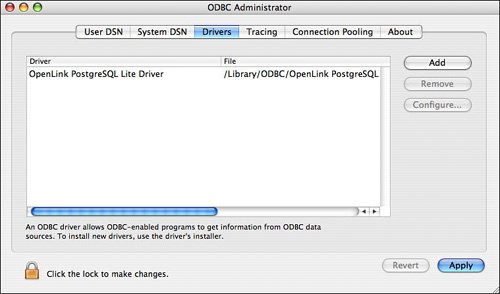 Figure 19.18. The Mac OS X ODBC Administrator.
