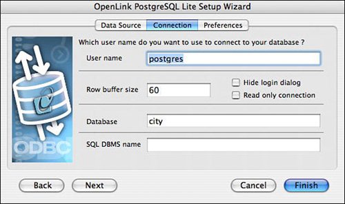 Figure 19.20. Defining a DSN for the PostgreSQL open source database in Mac OS X.