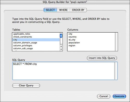 After you pass the authentication prompt, you'll likely see some additional dialog boxes, depending on the type of ODBC data source you're accessing. For SQL-based data sources, for example, you'll likely see a dialog that helps you formulate a SQL query, such as the one shown in Figure 19.23.