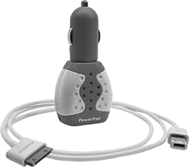 Griffin PowerPod Griffin's PowerPod lets you run your iPod off your car's cigarette lighter or AC power adapter. Just plug the PowerPod into the cigarette lighter, then connect the supplied 4-foot cable to your iPod's dock connector. It's great for listening to your iPod during long car trips! |  Model: PowerPod Manufacturer: Griffin Technology (www.griffintechnology.com) Price: $24.99 |