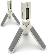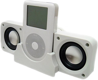 SavitMicro TriPod Speakers This iPod speaker system is unique in its styling. The three legs (two with built-in speakers) fold out into a tripod base; connect your iPod (or any other portable audio player) to the top, and you have a nice combination stand and speaker system. Actually, the iPod connects upside down, but that's Korean engineering for you. |  Model: TriPod Manufacturer: SavitMicro (www.savitmicro.co.kr) Price: TBA |