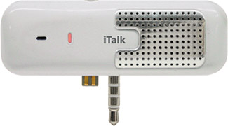 Griffin iTalk Microphone Plug Griffin's iTalk into the top of your iPod and you turn your iPod into a portable voice recorder. The iTalk includes a built-in microphone with automatic gain control, as well as a built-in speaker for playback purposes for music as well as voice. |  Model: iTalk Manufacturer: Griffin Technology (www.griffintechnology.com) Price: $39.99 |