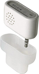 Belkin iPod Voice Recorder Belkin's iPod Voice Recorder lets your iPod double as a digital audio recorder. It features a built-in microphone and plugs directly in to your iPod. You can record hundreds of hours of conversations in mono WAV format. The Voice Recorder even has a built-in speaker, so you can listen to what you've recorded without headphones. And here's something extra neat thanks to the built-in speaker, you can use the Voice Recorder as a travel alarm clock! |  Model: F8E462 Manufacturer: Belkin (www.belkin.com) Price: $30 |