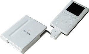 Belkin iPod Media Reader Want to transfer digital photos and other files you have stored on a digital media card to your iPod? Then plug in Belkin's Media Reader and start transferring. The Media Reader connects directly to your iPod and reads the following digital media formats: CompactFlash I, CompactFlash II, SmartMedia, Secure Digital, Memory Stick, and MultiMediaCard. Use the software built in to your iPod to transfer the files, and store them on the iPod's hard disk. |  Model: F8E461 Manufacturer: Belkin (www.belkin.com) Price: $99.99 |
