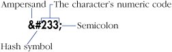 Figure 21.16. A numeric reference is comprised of an ampersand, a hash symbol (#), the numeric code for the character, and a semicolon. You can use numeric references to insert any character from the Universal Character Set. This reference is also for an é.  Or type entity, where entity is the name of the entity that corresponds to your character (Figure 21.17).