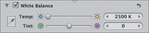 | 5. | In the White Balance controls in the Adjustments Inspector, drag the Temp slider to the right to about 9185. This helps the image a lot, but it's getting a little too pink.