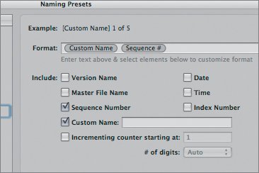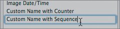 8. | Make sure Custom Name with Sequence is selected in the Name Format pop-up menu.
