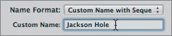 9. | Type Jackson Hole in the Custom Name field under the Name Format pop-up menu.