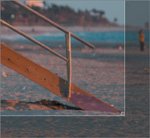 | 2. | Select the SoBe_2005 14 of 50 image in the Five Star Locations Smart Album in the Projects panel. It appears in the Viewer. This is a nice image, but there's a small bit of kite, or a flag, in the upper left corner that's a little distracting. And there's a bystander on the beach who interferes with the overall serenity of the image. So let's crop this image to remove those two unwanted elements.