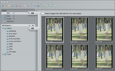 | 3. | In the Import dialog, click the Library icon in the Projects panel so that Aperture imports the Alessandra images to a new project.