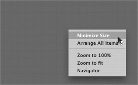 | In the previous exercise, we created the Light Table album, but it's empty. Let's add images to it. Note Due to the dynamic nature of the Light Table, the positions of the images in the Light Table as they appear in this book may not exactly match what you see on your own computer display. Still, use the figures in this book as a guide. | | 1. | Control-click in the Light Table area and choose Minimize Size.
