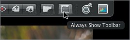 | Hiding the Toolbar We'll be adjusting this image, but before we start, let's rearrange the toolbar and filmstrip to customize the Full Screen mode viewing area for performing adjustments. | | 1. | Click the Always Show Toolbar button. Then, move the cursor away from the toolbar area.