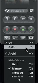 | | | 10. | Choose Auto from the Viewer Mode pop-up menu, or press Control-. (period). Then, move the cursor away from the filmstrip.
