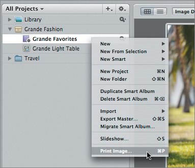 1. | Control-click the Grande Favorites Smart Album and choose Print image from the contextual menu.