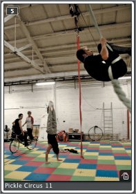 | Promoting and Demoting Alternates In addition to selecting a pick from each stack, you might also want to order the remaining images so that the best alternates appear in descending order, left to right, from the pick. This makes it much easier to find a high-quality alternate image later if you need one. 1. | Find the stack of images of the juggling bicyclist.