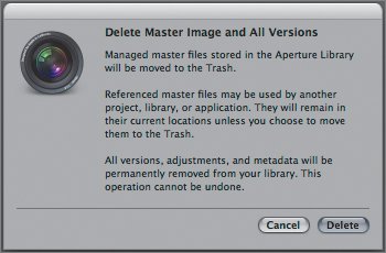 Because this file is the original master file for these two images, Aperture is a little more hesitant to throw it in the trash.
