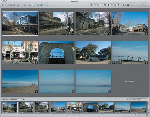 3. | Press Command-Option-S to change to the Basic layout. Aperture restores the Projects panel and the control bar to the main window, and because we have large number of images in the Viewer, it made the Viewer as large as it could to display as many of the selected images as possible.