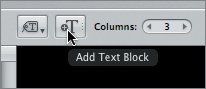 1. | Click the Add Text Block button. A text box appears at the bottom of Page 1. You may need to scroll in order to view the text.