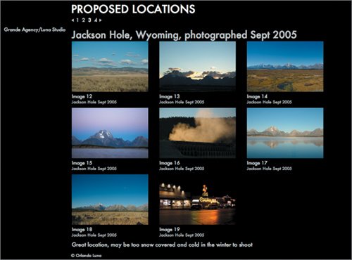 12. | Repeat steps 6 to 10 to add a subhead that says Jackson Hole, Wyoming, photographed Sept 2005 at the top of the page and a note at the bottom of the page that says Great location, may be too snow covered and cold in the winter to shoot.