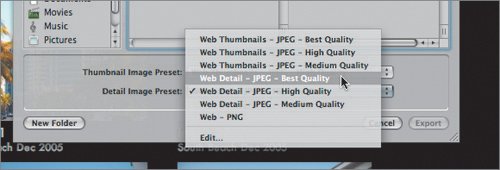 Tip The name you enter in the Publish Album As field will be part of the site's URL, so avoid using spaces or special characters. | 3. | Choose Detail Image Preset > Web Detail JPEG Best Quality, and leave the Thumbnail Image Preset set to the default High Quality setting.