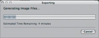 An Exporting window appears indicating how long it will take to generate the web journal. It may take several minutes as Aperture goes back to the original RAW files and processes any adjustments you have made to generate the final webpages.