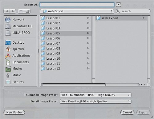 | 5. | In the Finder, navigate to the APTS_Aperture_book_files > Lessons > Lesson05 > Web Export > GrandeLocations folder on your hard disk.