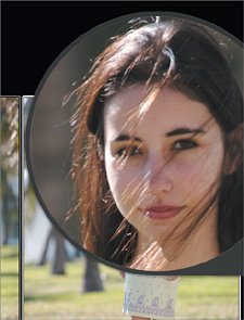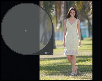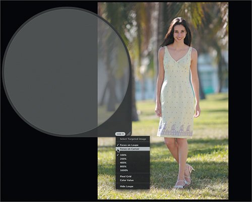 | 5. | Select the Loupe or press the accent grave (`) key, then press ShiftCommandaccent grave (`) to switch to the Centered Loupe. Drag in the center of the Loupe and position the small white highlighted circle over the model's face in the tropical 8 image.