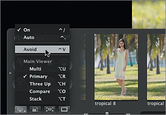 | | | 9. | Click the Viewer Mode button on the filmstrip and choose Avoid from the pop-up menu, or press Control-V.