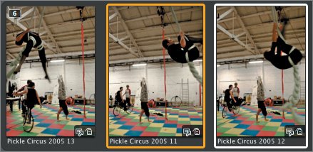 | 4. | Press Command-\. Image number 2 becomes the new pick, the old pick falls to second place, and Aperture automatically selects the third image.