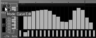 | The Curve is a step-increment parameter controller, meaning it changes at the rate of the current note value. For accenting brightness on a sequence of notes, the Curve can't be beat. However, for smooth knob movements, the Controller lane is better because you can turn off the grid to facilitate smooth changes. To sequence an instrument parameter using Curve 1. | Use the Curve/Keys switch to activate Curve mode in the Matrix (Figure 7.21).